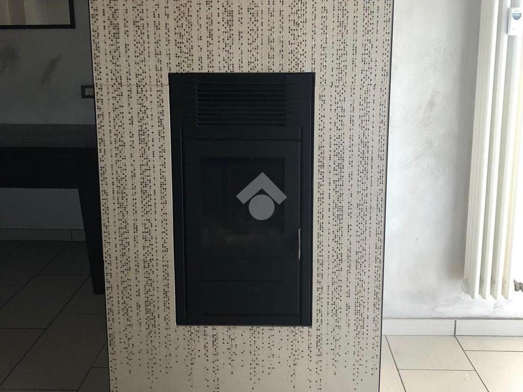 La zona living è valorizzata dalla presenza di una raffinata stufa a pellet, elemento di design che coniuga estetica e funzionalità, contribuendo al comfort dell’ambiente.